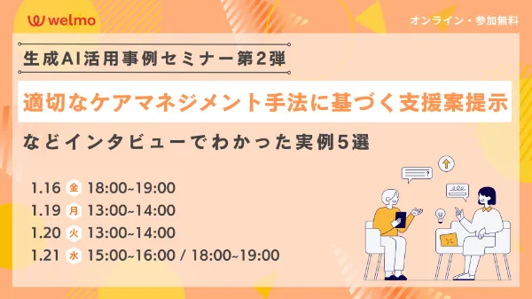 【生成AI活用事例セミナー第2弾】適切なケアマネジメント手法に基づく支援案提示などインタビューでわかった実例5選